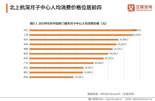 據艾媒咨詢數據,北京、上海的月子會所人均消費價格達到了65000元以上,杭州、深圳、成都(dōu)等城(chéng)市的月子會所人均消費價格均在5萬元以上。而消費者滿意度較高的月子會所,人均消費則要高出20%左右。比如(rú)深圳好評前三的月子會所,人均消費高達72130元,比整體(tǐ)人均消費高出了30%。